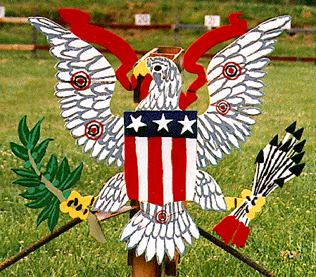 In 1994 Rod England and his son Adam furnished to the association an effigy eagle that was to be shot down a piece at a time. This event was repeated in 1995 utilizing a bird made by the 1994 winner, Russ Combs. The winner in 1995 was Dana Forslund, with Roy Gatlin and Jack Stoner runners up.