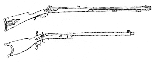 A typical American longrifle (top) is shown in comparison with a typical schuetzen rifle. Illustrations by Andrew Schiffer.