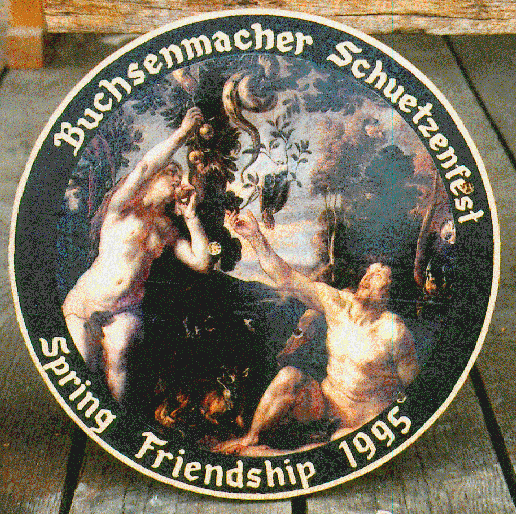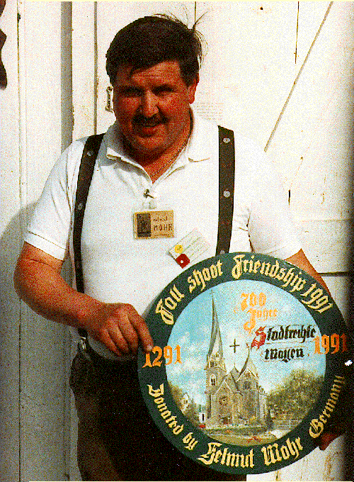 In the fall of 1991 Helmut Mohr donated a painted target to be shot at the National Fall Shoot. This was in honor of the 700th anniversary (yes, you read that correctly, 700 years) of his hometown of Mayen-Hausen, Germany. This was a one-time-only event at the fall shoot, and the same firing procedure was used as for the other painted targets.