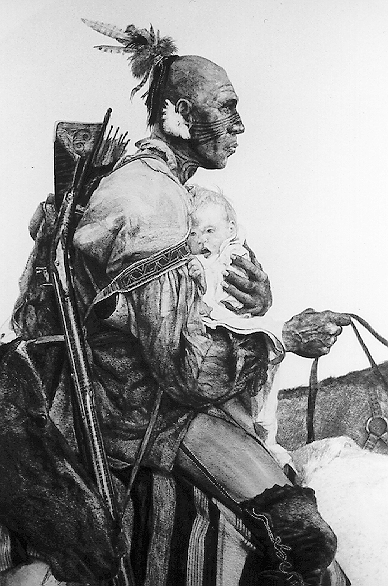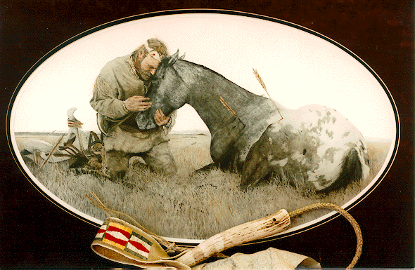 Captive Hearts portrays one of the aspects of American Indian warfare that has received little attention from the art world due to the harshness and unpopularity of the subject. Lee paints this event without pulling any punches and yet with such tenderness that we can't help but feel reassured as we witness the beginning of a new family relationship.
