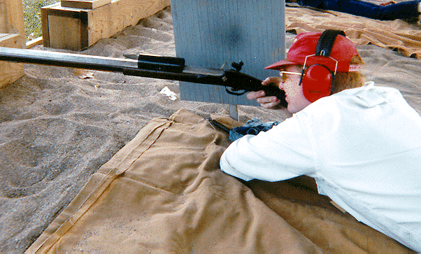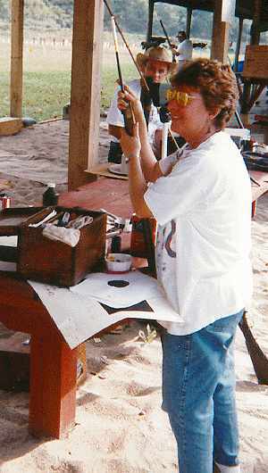 Chunk shooting also poses problems in establishing and maintaining a consistent shooting position from shot to shot and relay to relay. The match is fired from the prone position over a rest. For each shot you have to get down on the ground to shoot and then get back up to reload. Every time you leave your shooting position, you have to reestablish it for the next shot. Now that's no different from any other kind of muzzleloading shooting, but with offhand or bench shooting you aren't making quite the degree of readjustment between shots as with chunk shooting. The problem is amplified if the shooter uses a particularly heavy rifle that is hard to maneuver in and out of position for every shot. A failure to maintain consistency in your shooting position from shot to shot will result in fliers caused by canting the barrel and variations in sight picture caused by placing your face in a different position on the stock relative to the sights. It takes many hours of practice and familiarity with your rifle to control these variables. The chunk shooting game is quite challenging and much more demanding than may be apparent to the casual observer behind the line.