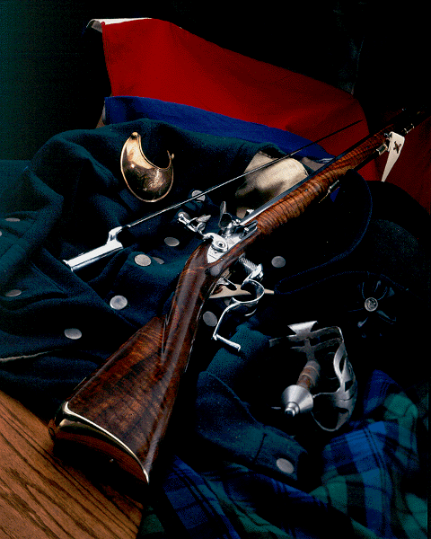 The Annual Register [recorded for June 1, 1776] reads: "Some experiments were tried at Woolwich...with a rifle gun upon a new construction by Captain Ferguson of the 70th Regiment, when that gentleman, under the disadvantages of a heavy rain and a high wind, performed things, none of which have ever before been accomplished with any other small arms..."At the beginning of the American Revolution, then captain Patrick Ferguson demonstrated for the British army this rapid-fire breech-loading rifle. During the Revolutionary War Ferguson commanded the only British soldiers using his patented rifle. Four years after his demonstration, he died with his men in one of the war's strangest battles.